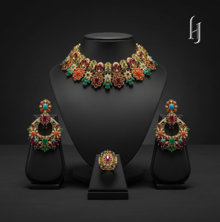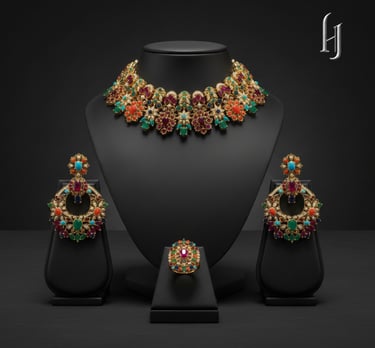 Explore exquisite gold, ruby, emerald, and diamond jewellery pieces.